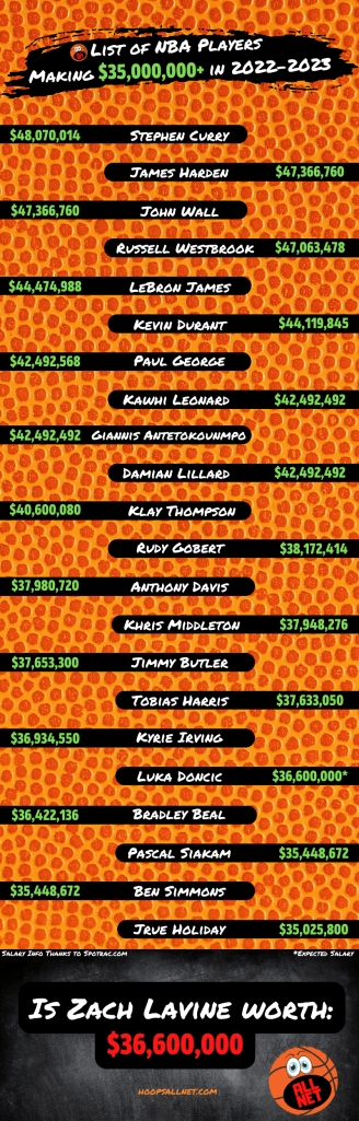 Jimmy Butler – $37,653,300 – Jimmy does plenty to deserve this money, and it’s not really relevant to the Lavine situation but it’s too fun not to add him to the list because Butler’s contract goes until 2025-2026 when he will be making $52,413,394. That is a ton of money for a 36 year old Jimmy Butler.